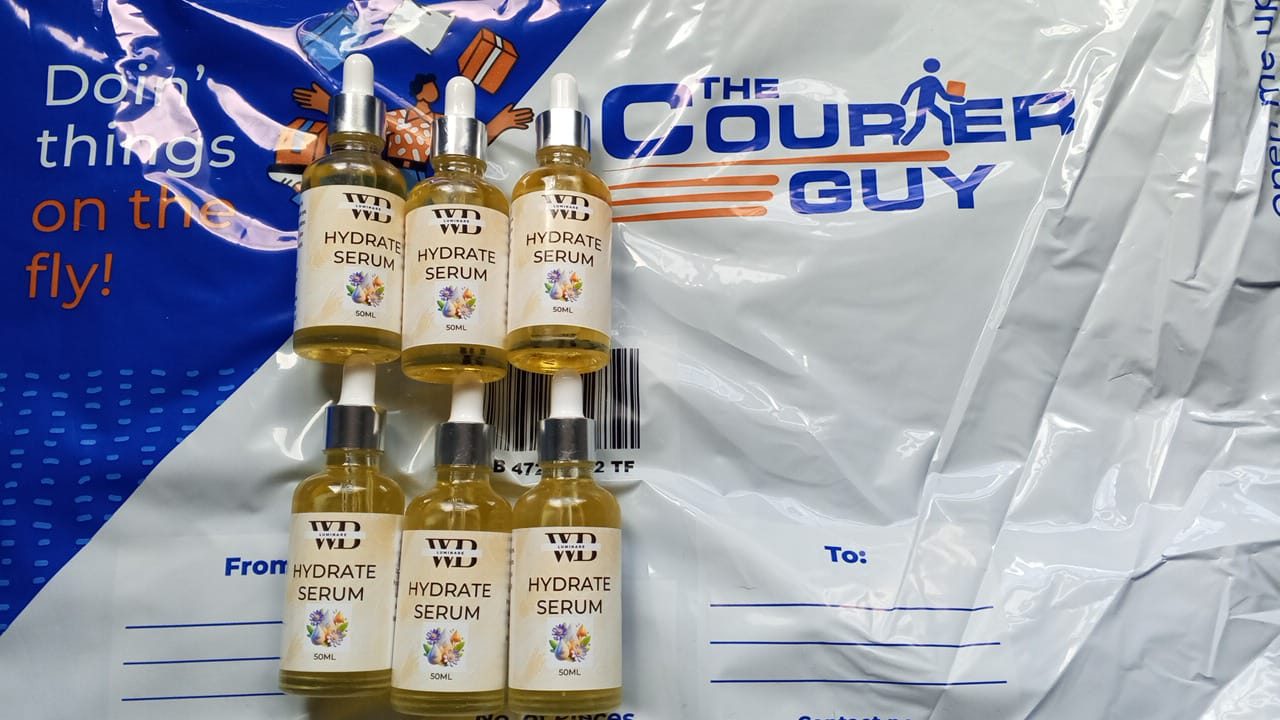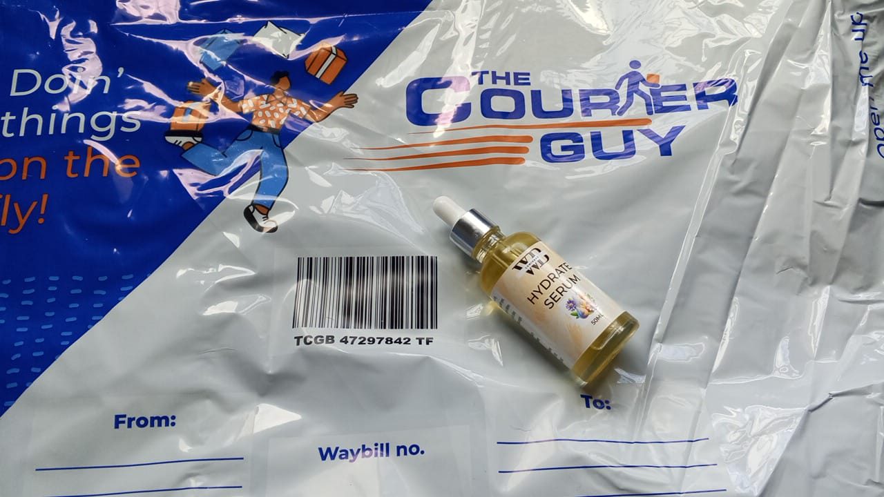 Once payment is confirmed, your serum is packed safely in a Courier Guy flyer bag.